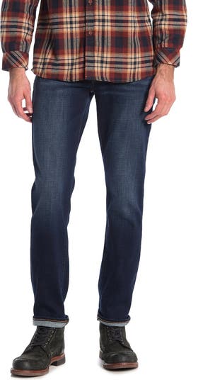 A breathable, cotton blended slim fitted jeans with fading and whiskering provides a simple, yet chic attire. Fit: this style fits true to size.