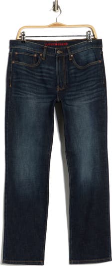Fading and whiskering keep the details looking classic on a pair of straight-leg jeans cut from stretch-kissed denim for casual comfort.