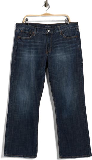 Light whiskering and fading subtly define the bootcut legs of everyday jeans cut from low-stretch cotton denim.