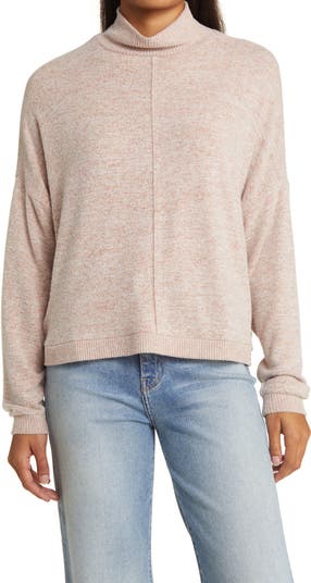 Roomy dropped shoulders frame this supersoft mock-neck sweater knit in a slightly abbreviated length with classic rib trim.
