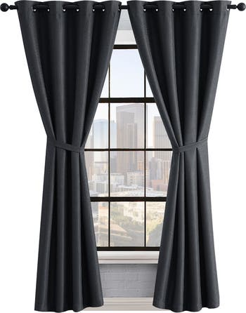 Wispy, light-controlling curtains are cut from thermal fabric to add elegance to your home. Each panel pair also includes 2 matching tie backs with loops that can easily be tied together or used with a curtain hook (hooks sold separately).