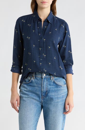 A perfect work-to-weekend staple, this blended cotton button-up shirt is covered in adorable hearts for a look you'll love.