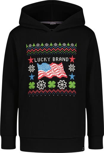 A Fair Isle-inspired American Flag motif adds patriotic spirit to this cotton-blend hoodie for your youngster.