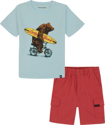 They'll get in touch with their wild side in this cotton-blend bear graphic T-shirt and cotton shorts set.
