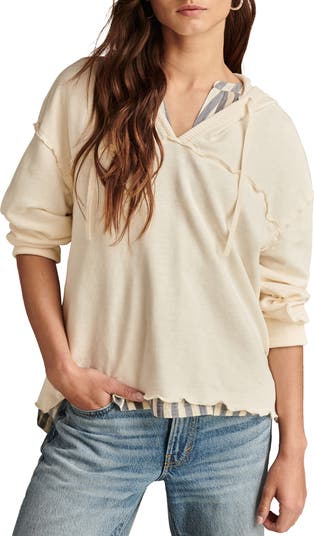 The weekend is calling in this stretch-cotton hoodie designed with exposed seams and a lettuce-trimmed hem.