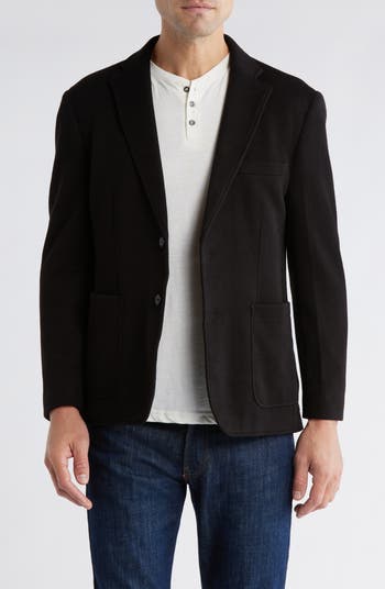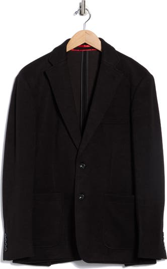 A soft ribbed knit enhances the comfort of this two-button sport coat framed by notched lapels and patch pockets for polished style.
