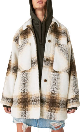 Fall for the relaxed silhouette of this cozy shirt-jacket designed with oversized checks and fuzzy texture.