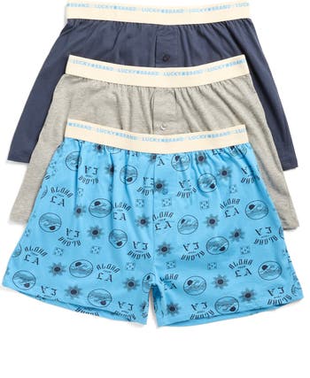 An assortment of prints and colors details a pack of soft cotton knit boxer shorts to update your drawer of essentials.