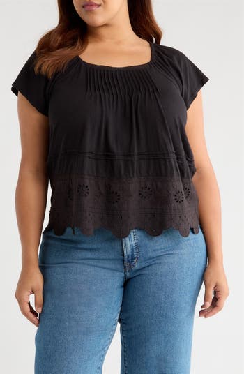 All the delicate details combine on a sweetly pleated top designed with dainty cap sleeves and intricate eyelet embroidery.