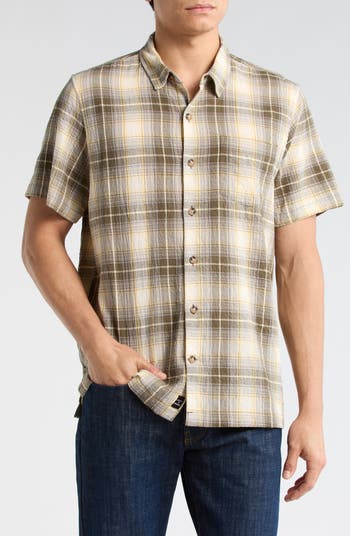 Lightweight and breathable, this short-sleeve button-up shirt made of crinkled cotton enhanced with stretch is sure to be a warm-weather favorite.