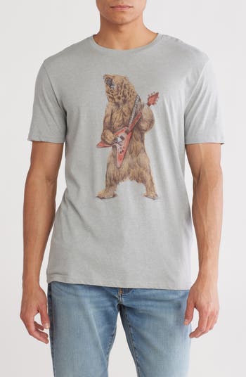 Get in touch with your wild side and rock out in this stretchy T-shirt that features an electric guitar-playing bear graphic.