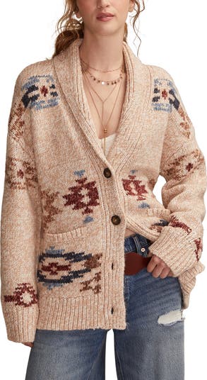 This longline cardigan knit from a chunky mélange of yarns will bring out your inner equestrienne as it keeps you cozy at the hoedown.