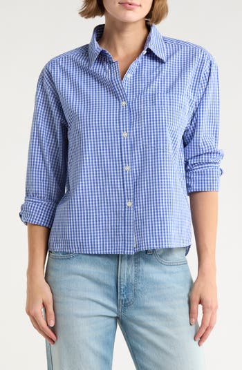 Cropped for a contemporary look, this button-up shirt is made from lightweight cotton poplin in classic vertical stripes.