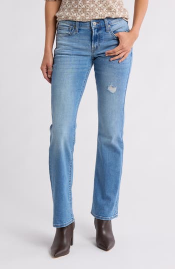 Throw it back in leggy bootcut jeans refreshed with a high-rise waist and stretch-kissed denim with broken-in fading.