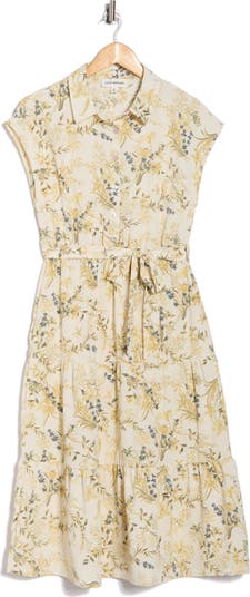 This prairie-style midi dress in a pretty print features an adjustable belt so you can perfect the fit.