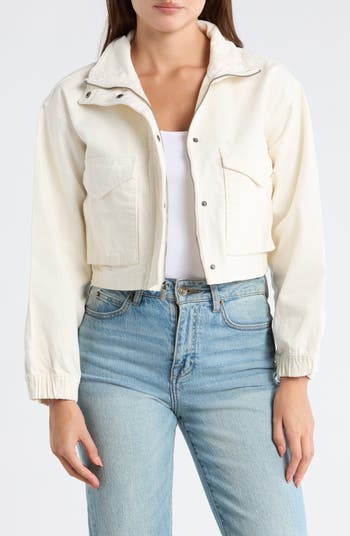 Layer on this sporty zip-front jacket cut from soft cotton twill and finished with roomy pockets for added utility.
