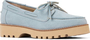 A classic moc toe delivers loafer-inspired appeal to this boat shoe finished with wraparound stitching and elevated by a lugged platform sole
