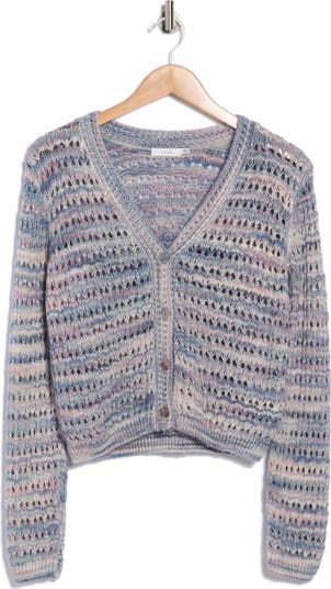 This open-knit V-neck cardigan made from a medley of colorful yarn stands out on its own or as a chic layering piece.