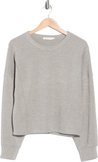 Front seams bring silhouette-skimming shape to this relaxed long-sleeve shirt cut from a textured knit.