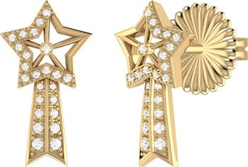 Dainty diamonds illuminate shooting star inspired studs delicately framed in your choice of luxe metal finishes.