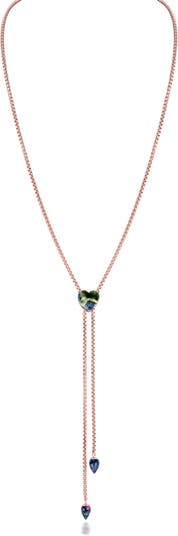 A heart-shaped agate stone is hand-polished to shine at the slide closure of this box-chain Y-necklace plated in gleaming 14-karat gold.