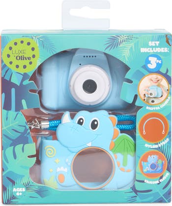The perfect gift your aspiring photographer, this set comes with a digital camera, a nylon strap and dinosaur-shaped sleeve.