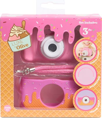 The perfect gift your aspiring photographer, this set comes with a digital camera, a nylon strap and ice-cream-shaped sleeve.