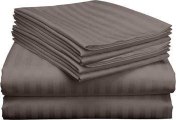 Elevate your bedding with this set of lightweight microfiber sheets covered in tonal stripes for hotel-quality appeal.