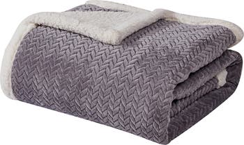 Easily switch up your living space in seconds with this lightweight throw blanket featuring a braided knit on one side that reverses to a faux shearling style.