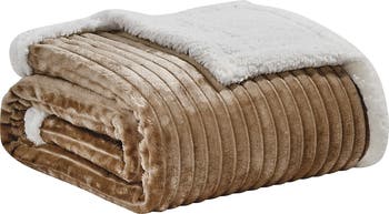 Thoughtfully designed for year-round use, this ultrasoft throw blanket features a corduroy-textured microplush side that reverses to a faux shearling style.