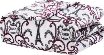 Showcase your love for your favorite city with this fleece throw blanket adorned with Parisian motifs.