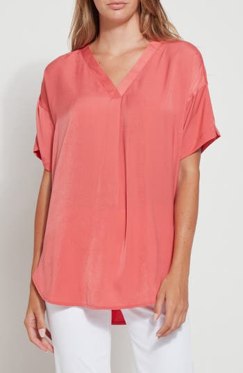 With an oversized cut and curved hemline, this go-anywhere top is cut from soft, fluid satin that has a bit of stretch for comfort.