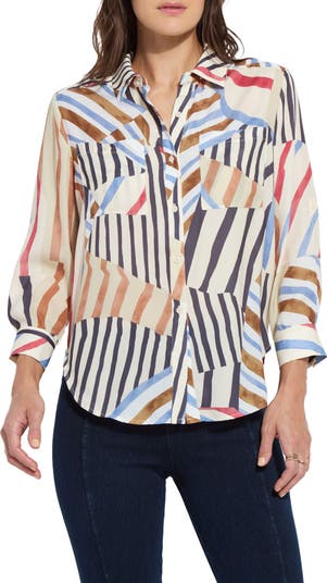 Switch up your shirt options with this workwear-inspired button-up featuring rollable bracelet-length sleeves and a colorful allover striped print.