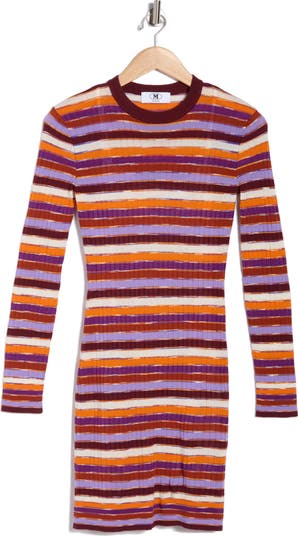 Embrace sweater weather without compromising on your 'fit in a cozy striped minidress framed by long sleeves textured with wide-scale ribbing.