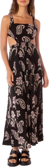 A strappy open back and waist-showing cutouts bring summery appeal to an ankle-grazing cover-up dress made with a touch of linen for a breezy fit, even on hotter days.