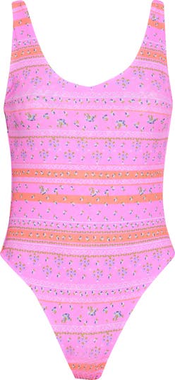 Beach days just got more fun with this one-piece swimsuit featuring a reversible design for two looks in one.