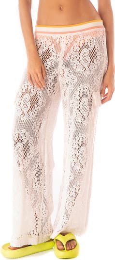 These cover-up pants are rendered in a cool flowery design and cut from a chunky open knit that brings retro appeal to your beach day.