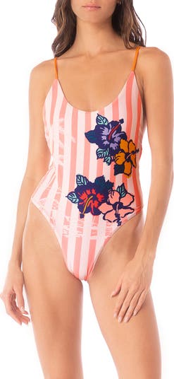 Get two looks in one with this reversible one-piece swimsuit boasting an island-inspired print and cheeky back coverage.