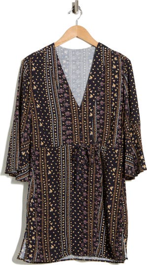 A unique geometric print emboldens the summery vibe of a cover-up caftan made from lightweight fabric for easy layering from resort to pool.