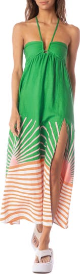 An open back with dainty straps gives breezy flair to this flowy cover-up dress that's looks great as you scroll the boardwalk.