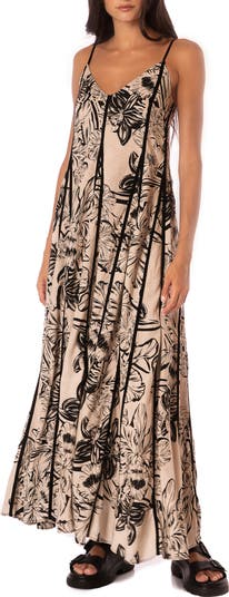 Contrast binding gives a panelled look to this breezy linen-blend cover-up dress rendered in a flowy maxi silhouette that's topped by dainty ties.
