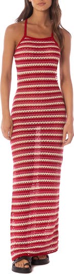 An airy open stitch give a curve-hugging fit to this stunning cover-up dress fashioned with flirty open-back ties for extra movement.