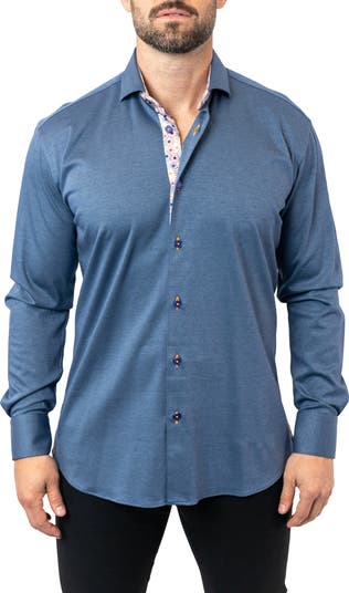 Sunbursts peek from the collar, placket and cuffs of a luxe Egyptian-cotton shirt tailored for a fit that's in between trim and regular.