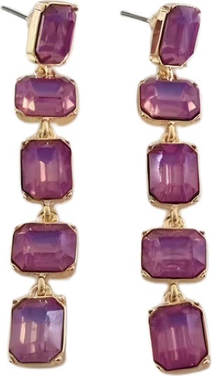 Faceted crystals lend a dose of shimmer and shine to linear-drop earrings done in a high-shine finish to illuminate your lobes.