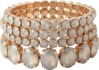Shimmery prong-set crystals illuminate the rows on a polished stretch bracelet designed to bring chic style to your wrist stack.