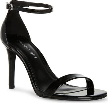 Skimpy straps and a sleek stiletto heel bring modern elegance to a minimalist sandal that perfectly elevates casual or semiformal looks.