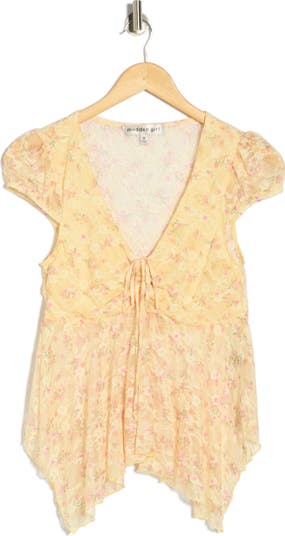 An asymmetric length swishes and sways with your every movement in this ditsy floral top fronted by a cinched tie for added sweetness.