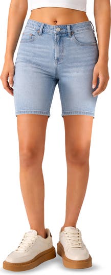 Go casual in these classic Bermuda shorts cut from comfortable cotton-blend denim in a perfectly faded wash.
