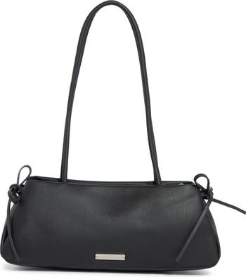 Grained faux-leather construction defines a slim shoulder bag adorned with darling bows to instantly sweeten your day-to-day looks.