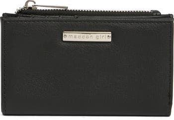 A slim wallet made from grained faux leather features a snap closure for easy access and an assortment of pockets and slots for storing your cash, plastic, and ID cards.